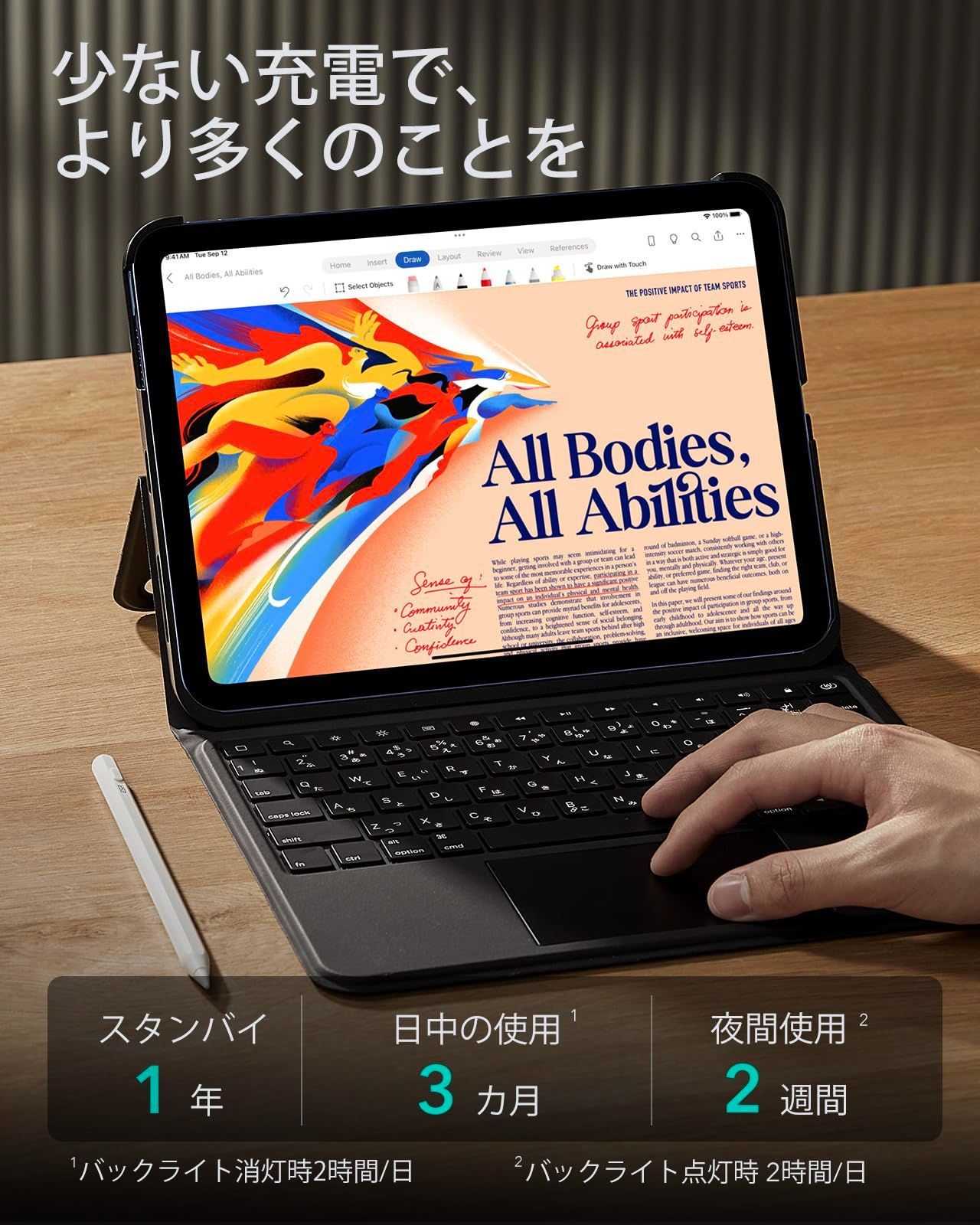 ESR Ascend iPad 第10世代 キーボード ケース iPad第10世代 (2022)用 トラックパッド付きキーボードケース バックライトキー付きマグネット着脱式キーボード 角度調節可能縦置き/横置きスタンド ブラック