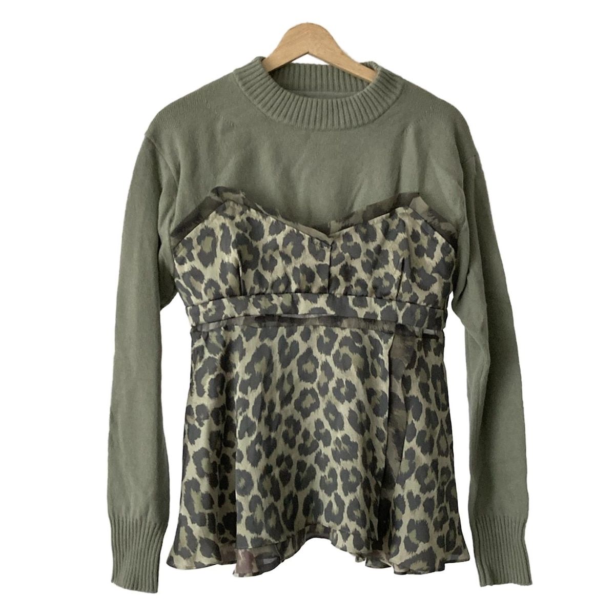 Sacai サカイ 長袖セーター サイズ1 S レディース - 22-06354 カーキ×ライトグリーン×マルチ 豹柄