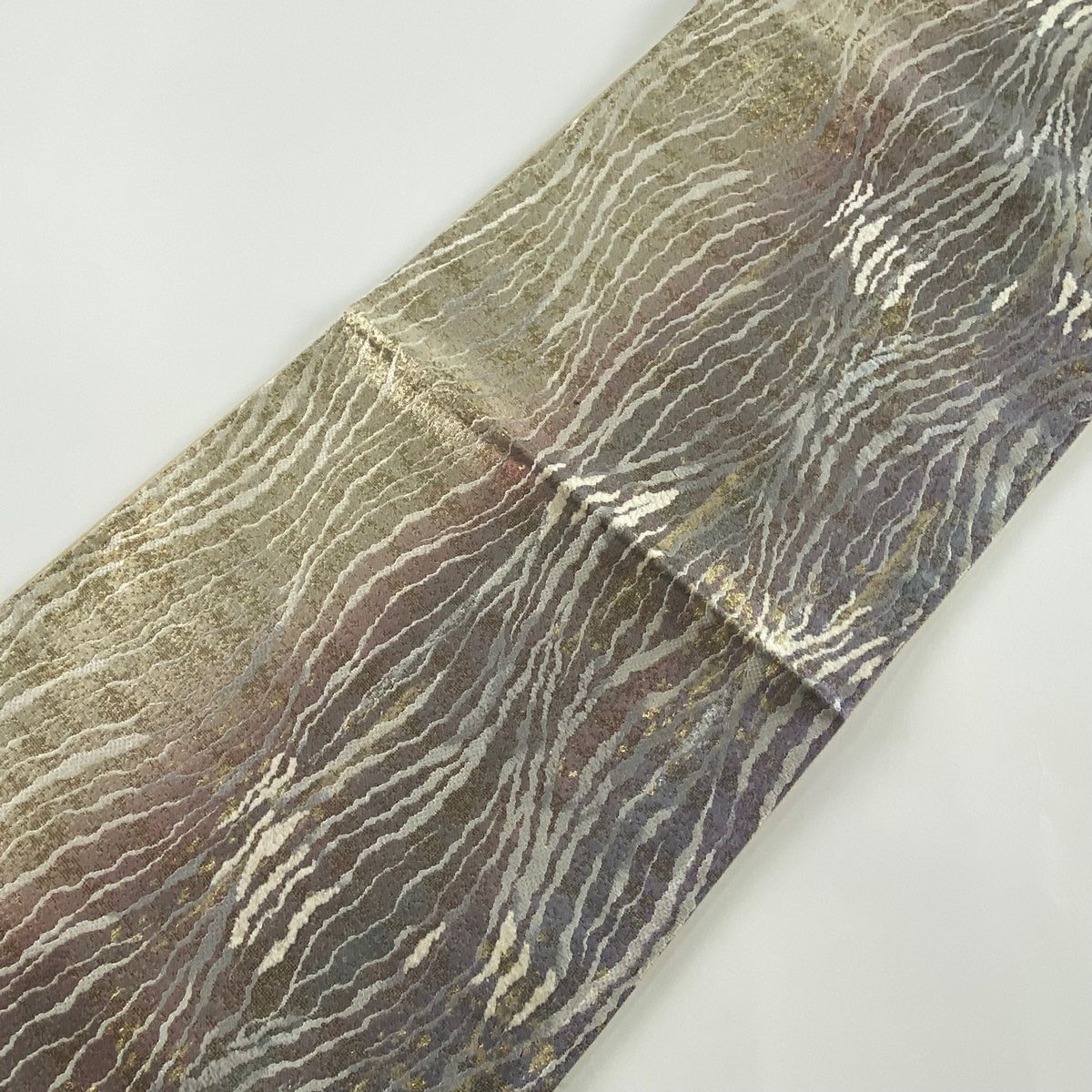袋帯 秀品 幾何学模様 金糸 箔 灰紫 六通 正絹