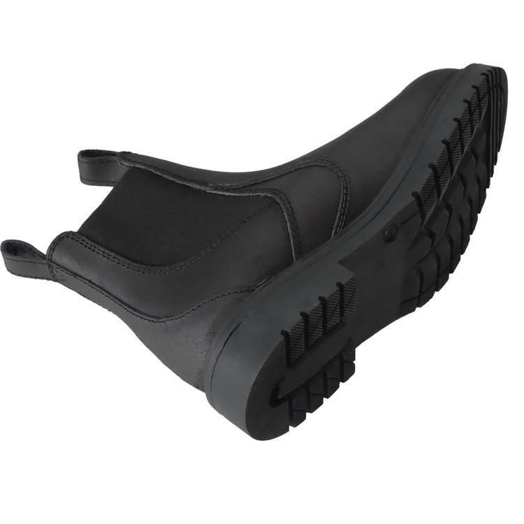 つま先部分に足先保護用の鉄製キャップが内蔵されていますので、万が一、馬に踏まれた場合も安心です。一般的な安全靴のようなごつさもなく、普通のショートブーツとそれほど変わらないスタイリッシュな外観となっています(つま先部分以外には鉄は施されていません)。