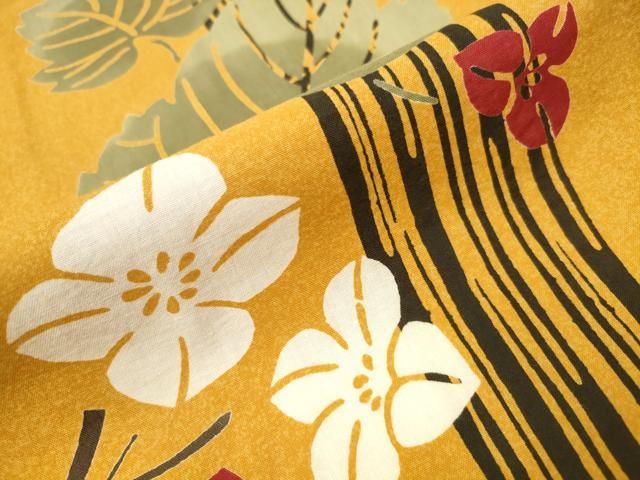 平和屋着物∴夏物 浴衣 竹縞 モンステラ花文 ng