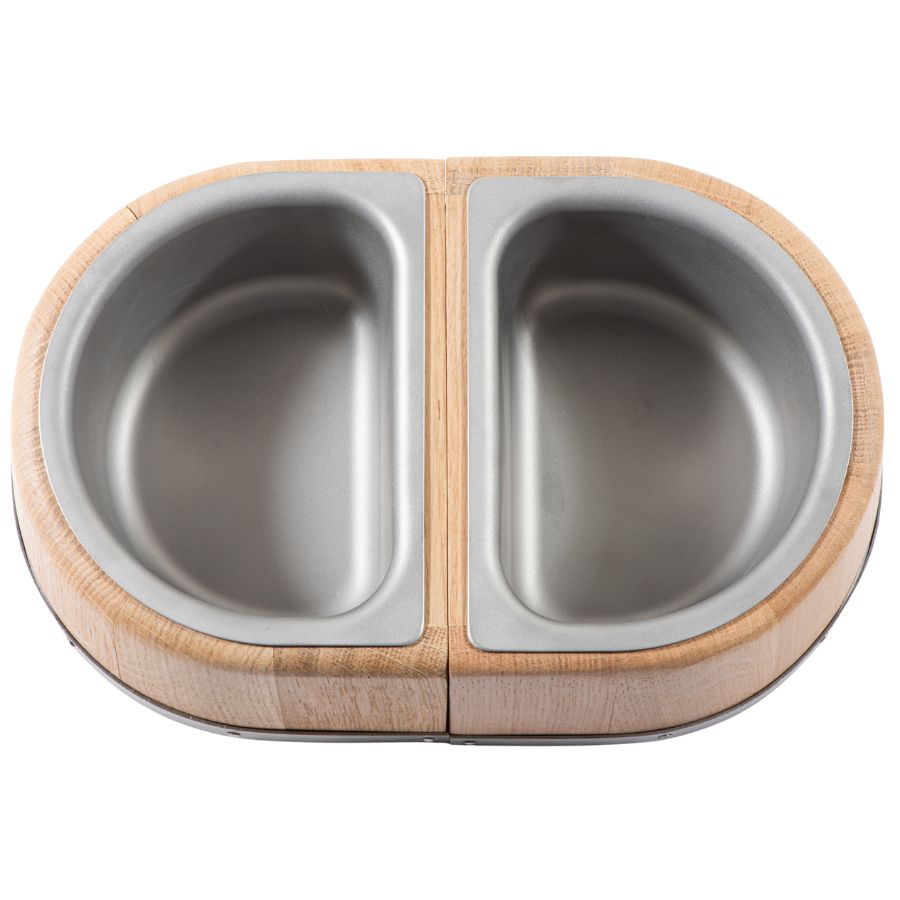 ☆マグネットが付いた中央の固定部で2つに分割できる個別のボウル