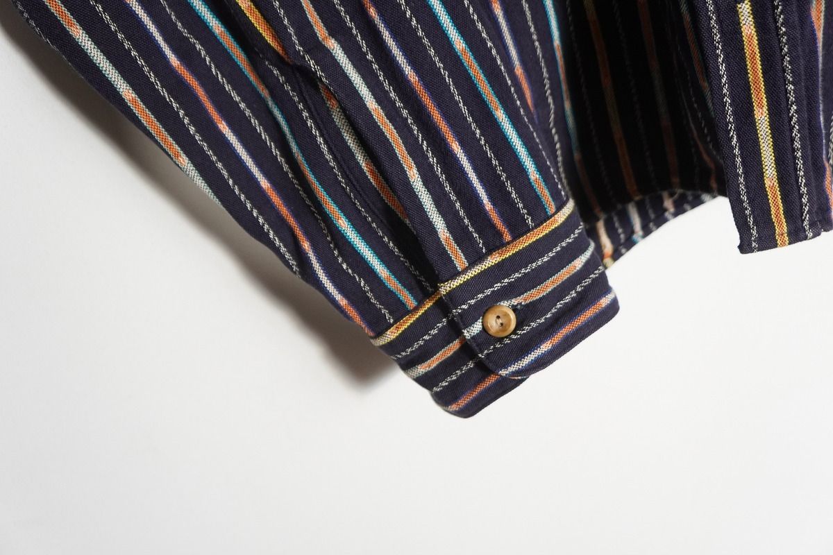 ネイティブテイストのストライプ柄デザインが特徴的な長袖シャツ。