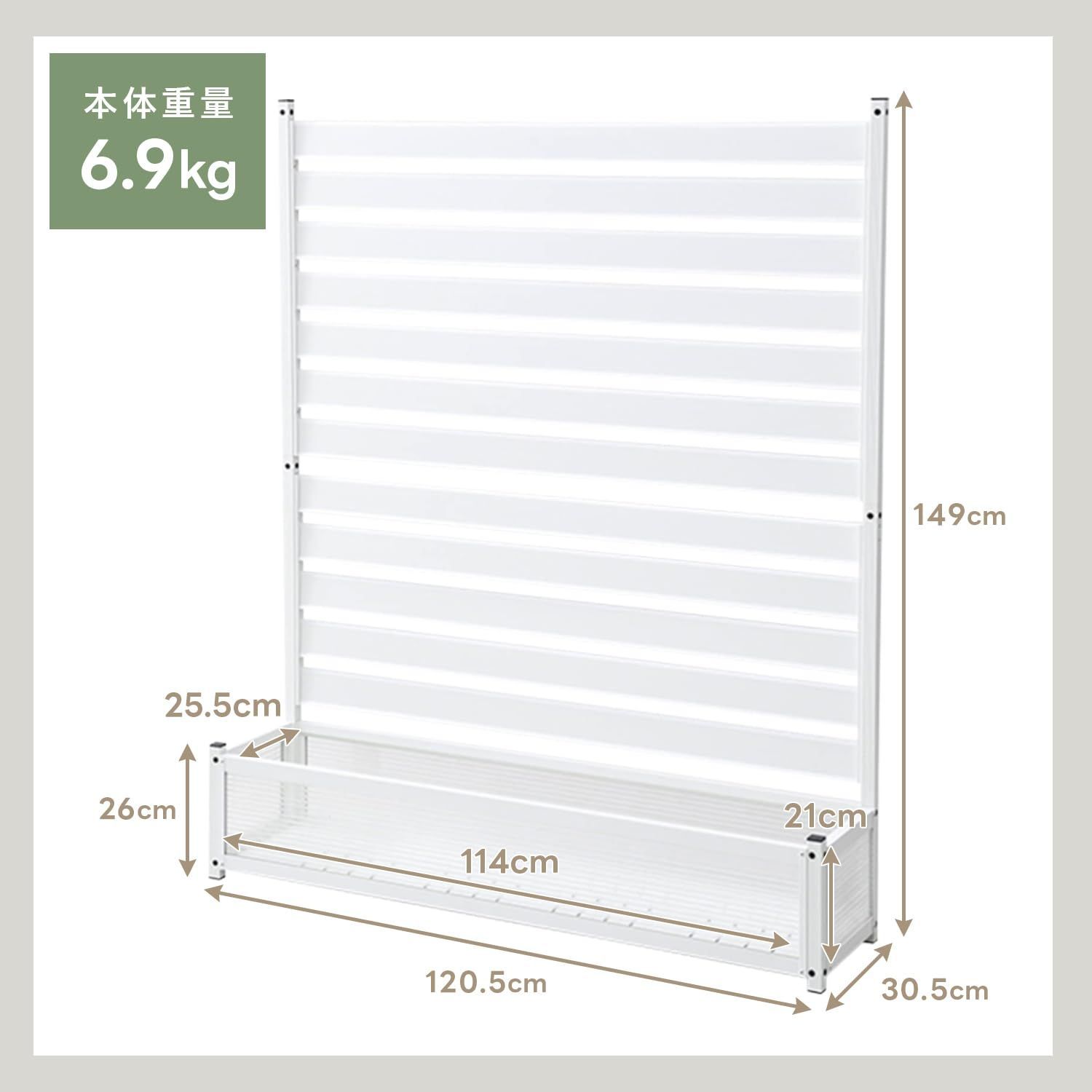 ホワイト ガーデンマスター 日よけ プランターボックス フェンス KAPF 1215 目隠し 幅120 奥行30 高さ149 cm アルミプランターフェンス 山善