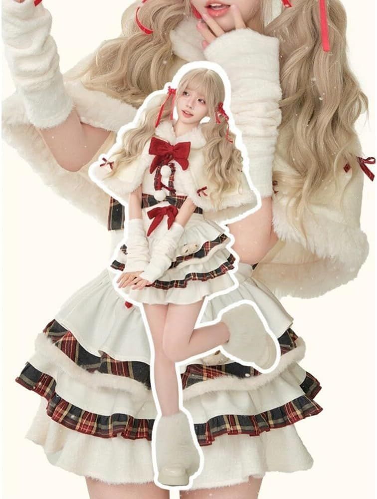 デザイン: 白と赤のツーピースドレスで、プラッド柄のトリムとリボンの装飾が特徴的なロリータファッション スタイル: ゴシック&ロリータ(ゴスロリ)スタイルのコスチュームで、フリルとレイヤードスカートが特徴 装飾: 赤いリボンの装飾が全体に配置され、首元、袖、スカートなどのアクセントとして使用 素材構成: 上質な白生地をベースに、プラッド柄の生地をアクセントとして使用したデザイン コーディネート: 白のソックスと合わせて着用可能で、完璧なロリータスタイルを演出 続きを見る この商品について