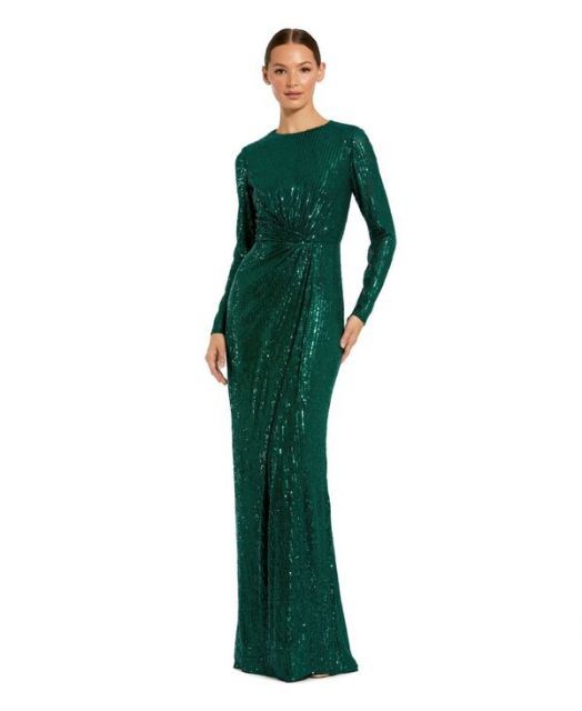 マックダガル レディース ワンピース トップス Women s Sequined Long Sleeve Side Knot Gown Emerald