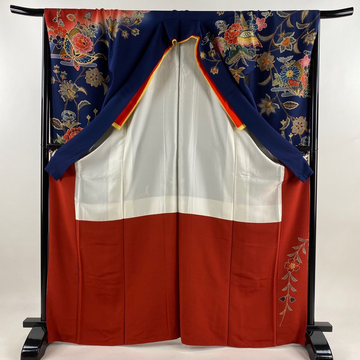 振袖 身丈167 cm 裄丈66 M 袷 宮崎良次 落款 蝶 松梅 ぼかし 濃紺 正絹 秀品