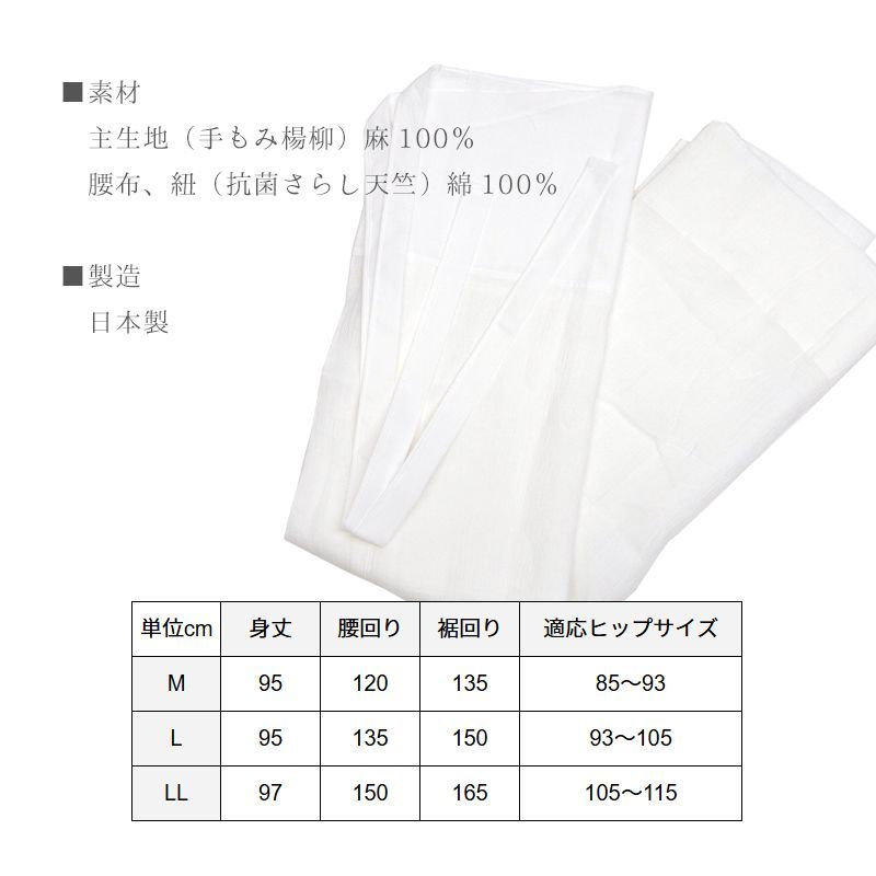 本麻手もみ楊柳 涼しい夏の裾よけ 着物 和装肌着 レディース 白 下ばき裾除け 腰巻き LL