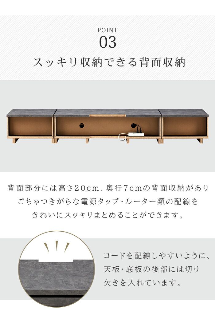 テレビ台 ローボード 石目調 幅207 大型 テレビボード 感 おしゃれ 完成品 3分割式 インテリア リビング 大容量 収納