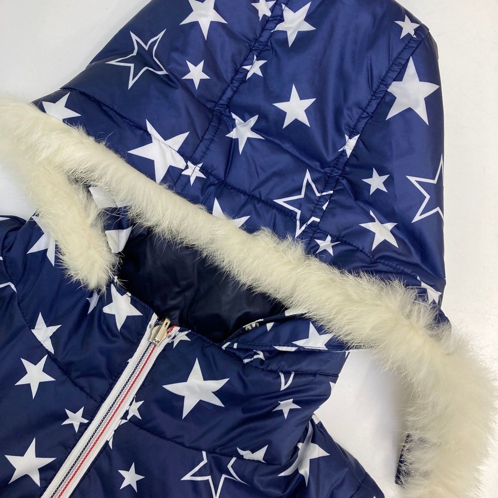 サイズ M キャロウェイ リバーシブル2 WAY フード付き中綿ジャケット 星柄 ネイビー系 ゴルフウェア レディース ストスト