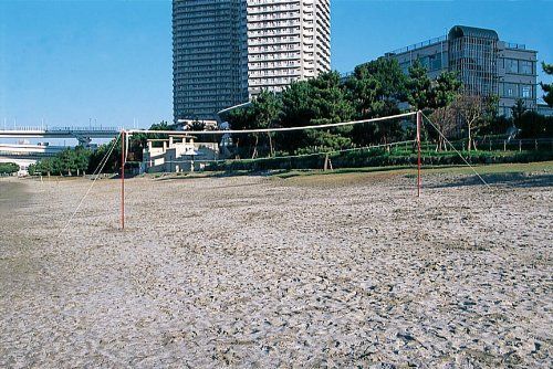 競技用ではありません。レクリエーション用です。ビーチに簡単設置でみんなで楽しめるレジャータイプのビーチバレーボールセット
