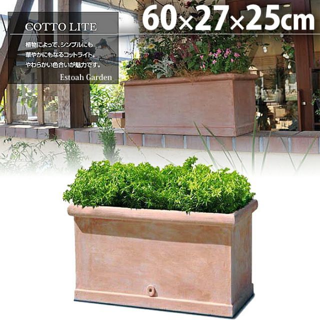 プランター 大型 植木鉢 長方形 ファイバー樹脂 鉢 アンティーク 風 CLタブプランター 幅600×長さ270×高さ250 底穴あり ガーデニング 園芸用品 庭作り オブジェ 深型 軽量 寒冷地 使用