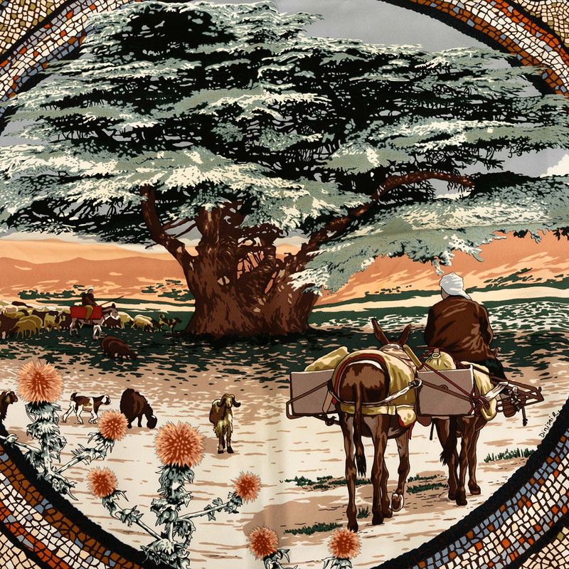 エルメス カレ90 SOUS LE CEDRE ヒマラヤ杉の下で ブラウン ベージュ マルチ シルク レディース HERMES 1-0231477