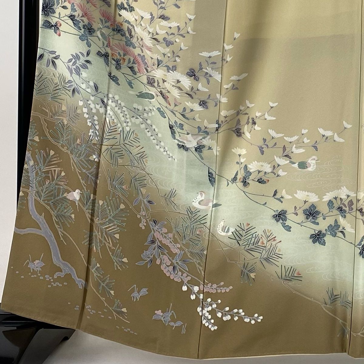 訪問着 身丈162 cm 裄丈65 M 袷 菊 鳥 染め分け ぼかし ベージュ 正絹 秀品