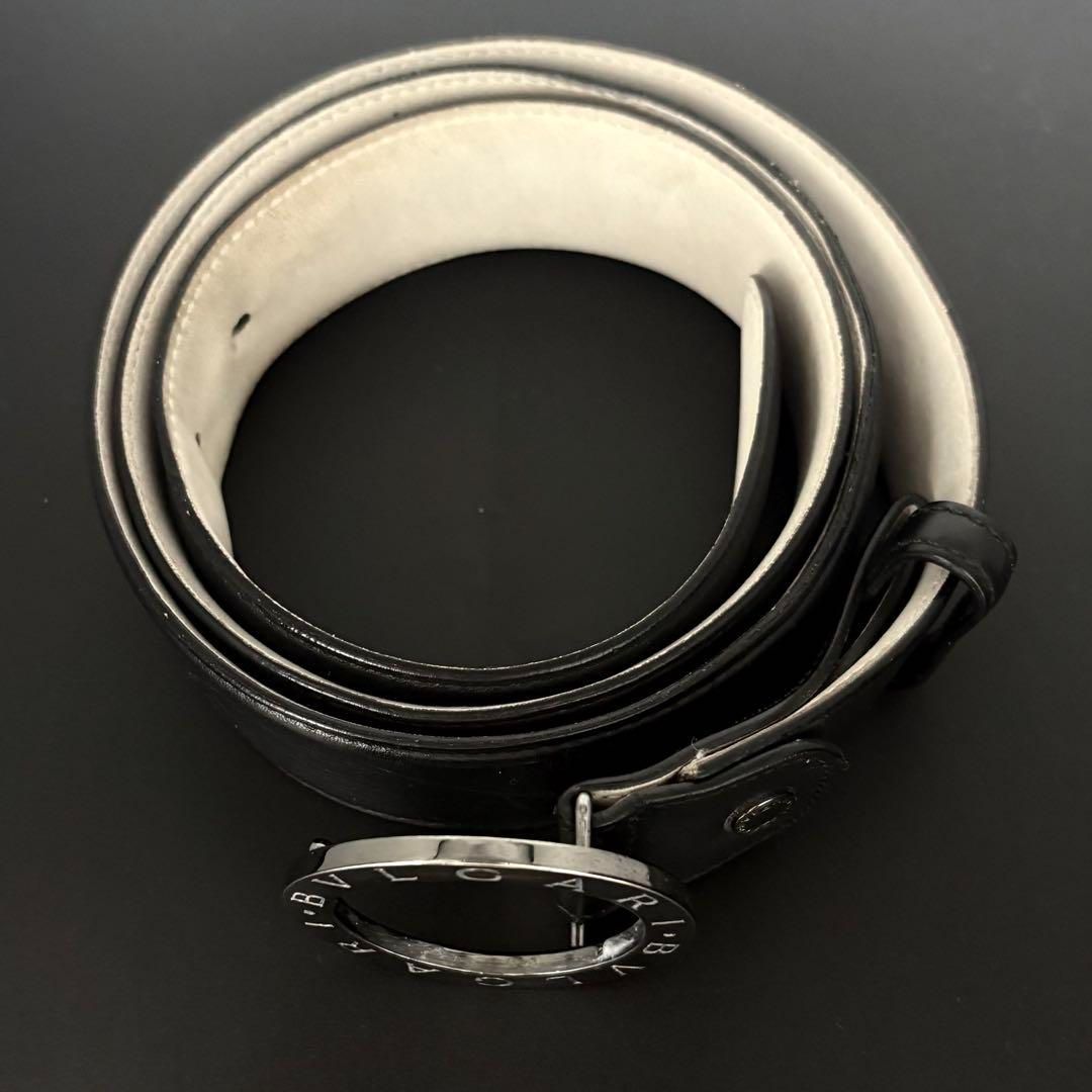 BVLGARI ブルガリ ロゴマニア レザー ベルト サークルロゴ ビーゼロ ブルガリブルガリ バックル 黒 ブラック き 44 110