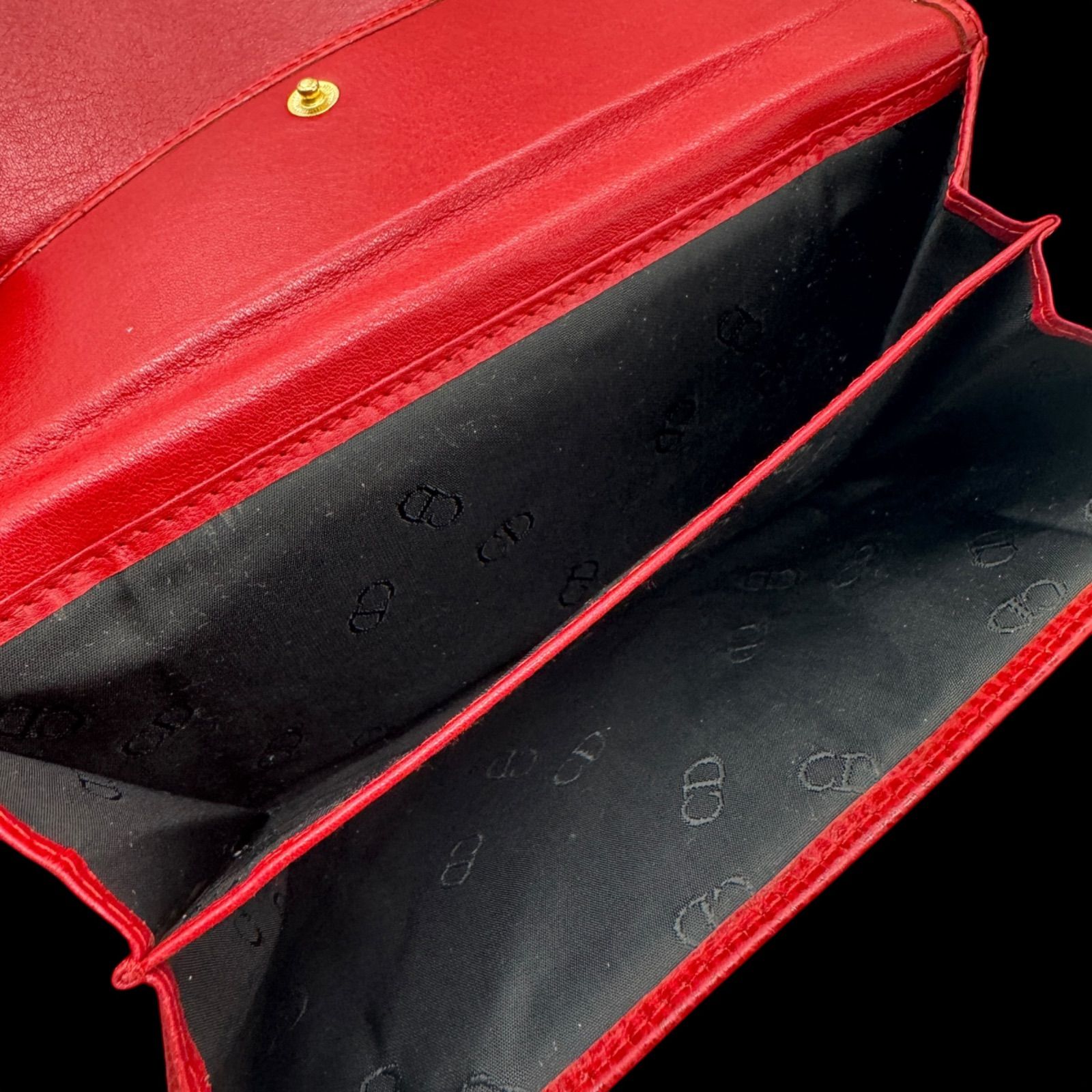 Christian Dior クリスチャンディオール レザーウォレット 長財布 ゴールドロゴ金具 赤 レッド