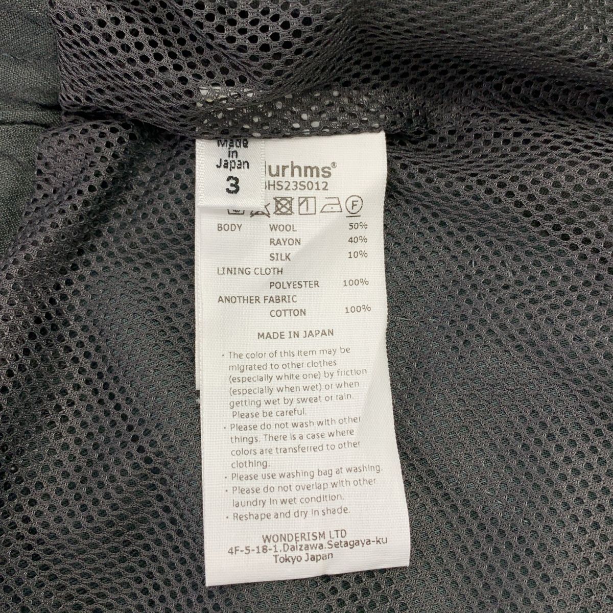 blurhms ブラームス 2025 SS Wool Rayon Silk Track Jacket フルジップ トラック オーバー ジャケット 3 グレー系 メンズ