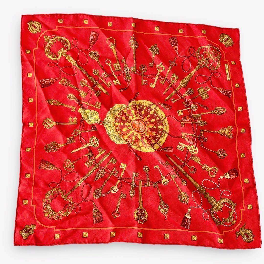"HERMES(エルメス)/カレ40 スカーフ カレ40 LES CLES KEYS シルク 柄 赤 キー 鍵 key