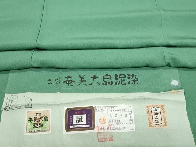 平和屋着物●本場奄美大島泥染 赤塚次男 色無地 緑青色 反端付き 正絹 vf