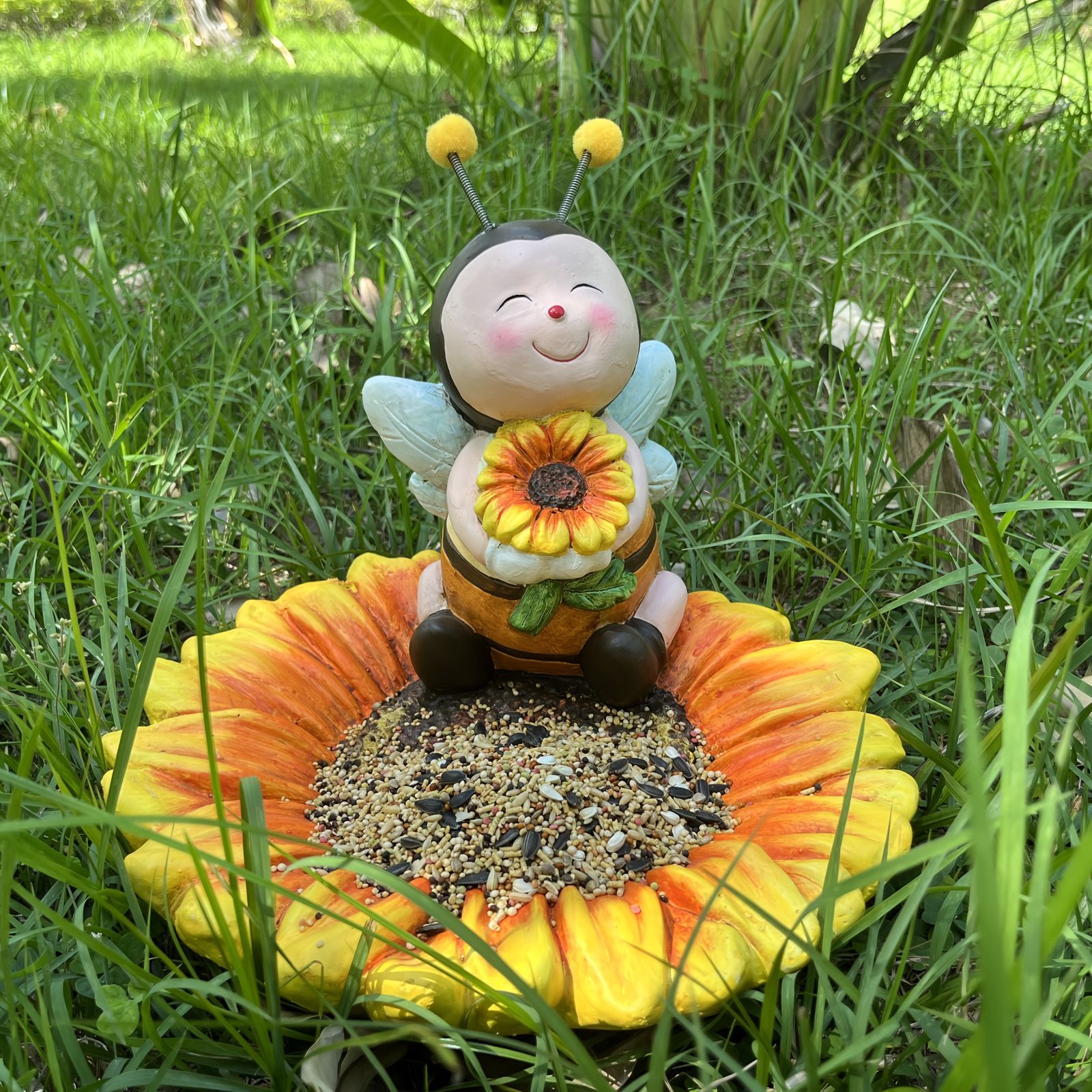 バードフィーダー 小鳥 野鳥 用 給餌器 餌箱 餌台えさ置き 置物 ヒマワリの上に乗っているミツバチ 餌入れ 鳥 ガーデンオブジェ インテリア ガーデニング ペット食器 野鳥観察 バード用品 インテリア雑貨 庭装飾