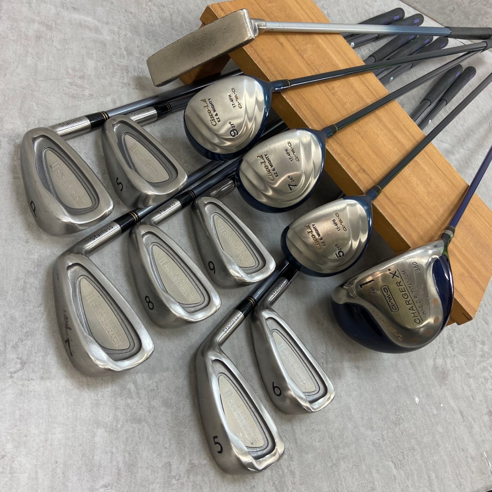 こちらの商品は新品のため、クラブに使用に伴う傷、キャディバッグのキャラクターロゴの生地が劣化、パターのヘッドに多数の傷、グリップに裂けなどがある状態の商品になります。