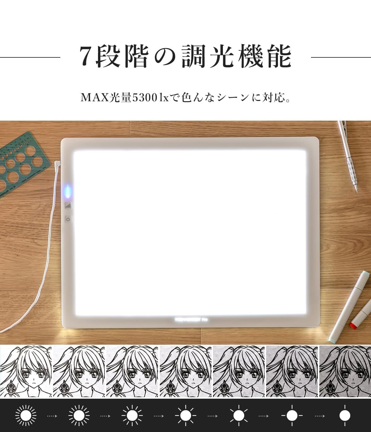 【日本製】 トライテック トレース台 トレビュアーPro A3 ホワイト 薄型 7段階調光 3年 A3-600-W