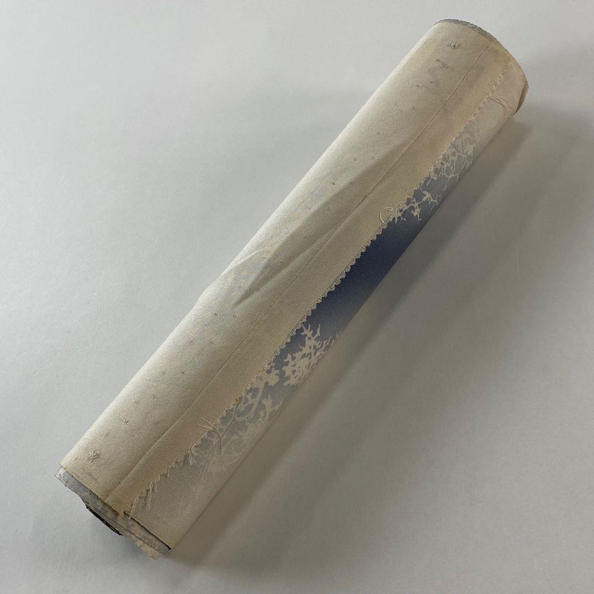 反物 秀品 小紋 草花 樹木 ぼかし 青灰色 正絹