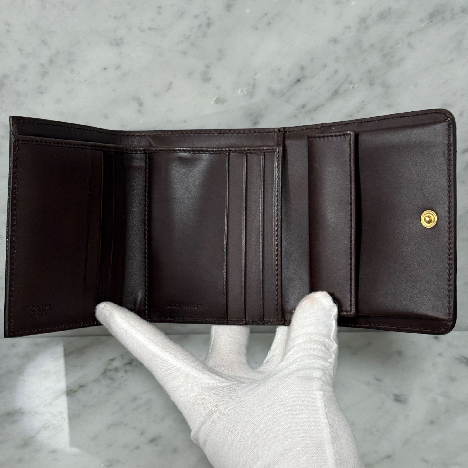 PRADA プラダ 三つ折財布 キャンバス ロゴ レザー コンパクト
