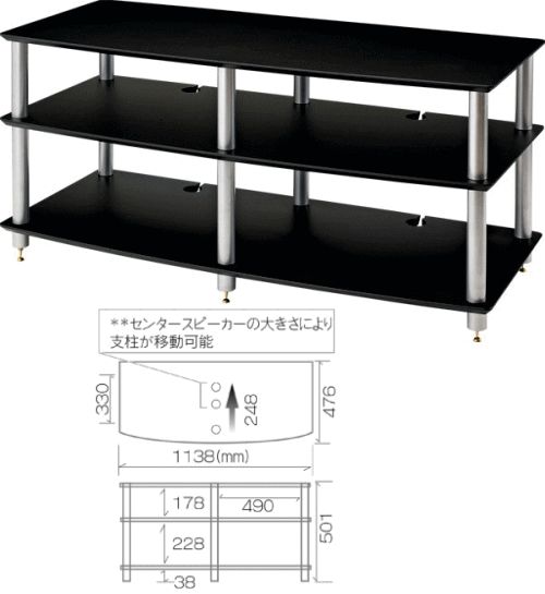 AV 03 BS 棚板ブラック支柱シルバー 03シリーズ オーディオラック Sound Magic サウンドマジック
