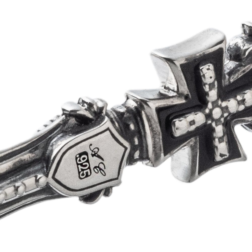 Courage and refined taste at the ear—the Crown Sword Earring stages a dramatic vertical trio of motifs: crown, cross, and sword. A jet-black cubic zirconia sets a poised tone, while the cross is finished with black enamel for added depth and modern edge. Long revered as emblems of bravery and justice, the sword’s sharp silhouette mirrors unwavering resolve. Crafted in SV925 and finished one by one by master artisans in atelier workshops, the piece distills pure savoir-faire—elevating jewelry into an art object. Worn solo on one ear, it imprints everyday looks with bold character and radiates singular presence on special occasions. A precise harmony of classic and contemporary—truly wearable art.