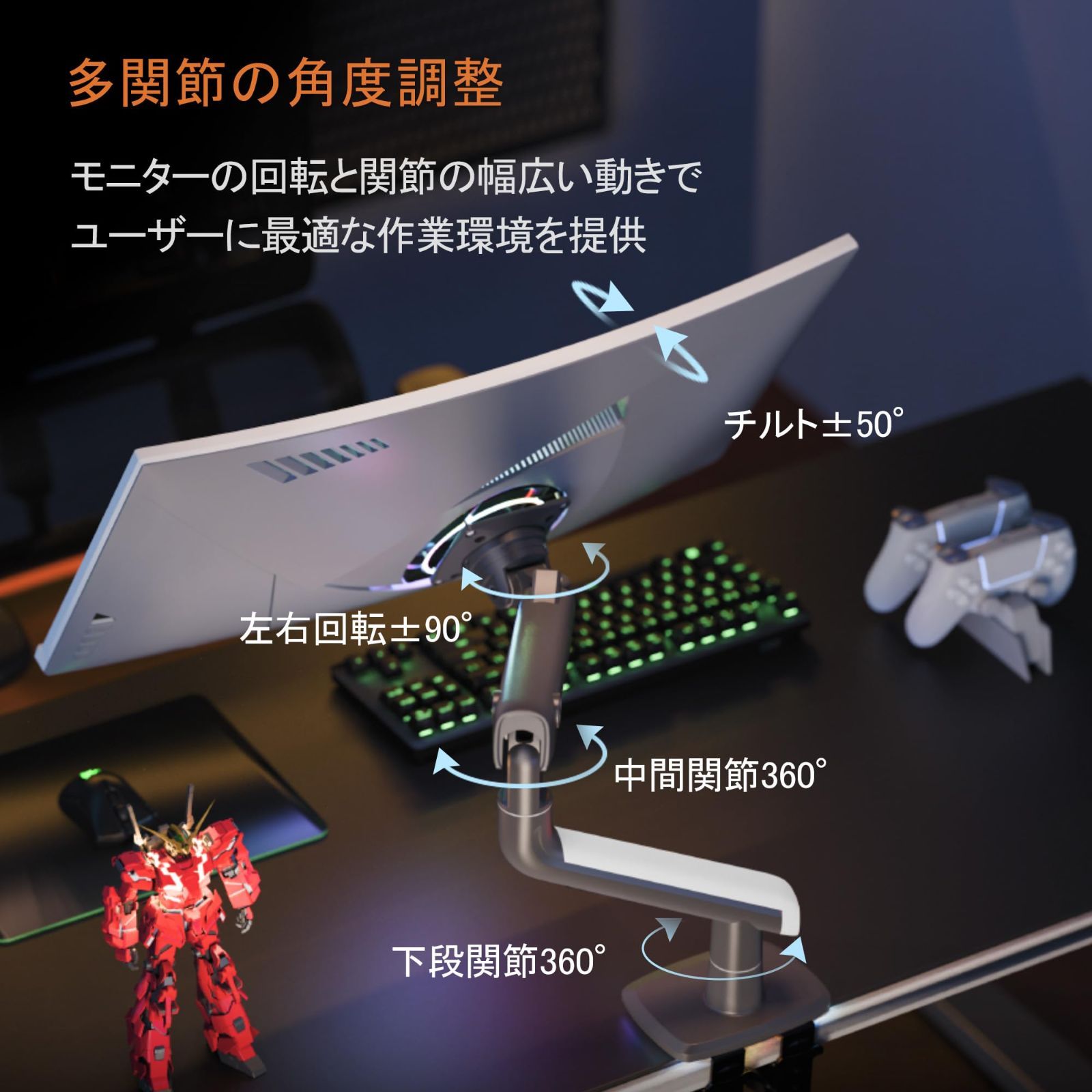 NB 大型モニターアーム 大画面 高耐荷重2-18㎏ 24-49インチ対応 ウルトラワイド湾曲用 ゲーミングモニターアーム 24 27 32 34 42 49インチ対応 ディスプレイアーム 曲面モニター 機械スプリング VESA