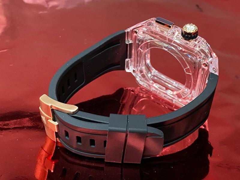 透明な輝きが手元を引き立てる、スケルトンデザインのApple Watchカバー。