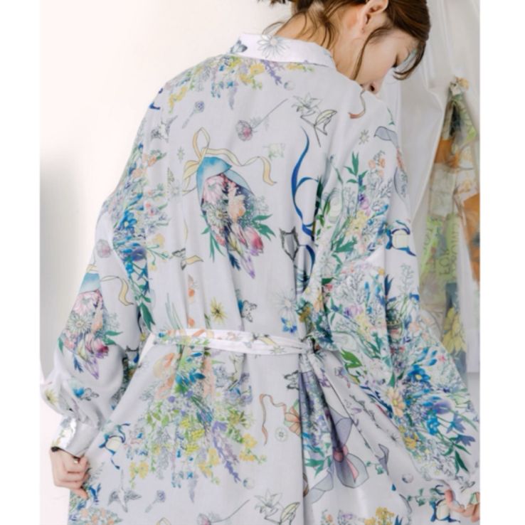 星座と花束柄シャツワンピース