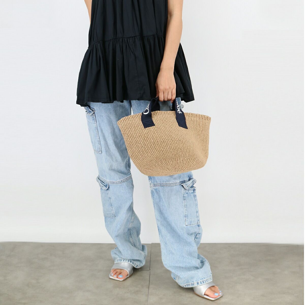 CHLOE KIDS クロエ キッズ 大人もOK ペーパーバッグ C 20427 かごバッグ ストローバッグ ハンドバッグ ロゴ レディース 子供 ガールズ ネイビー