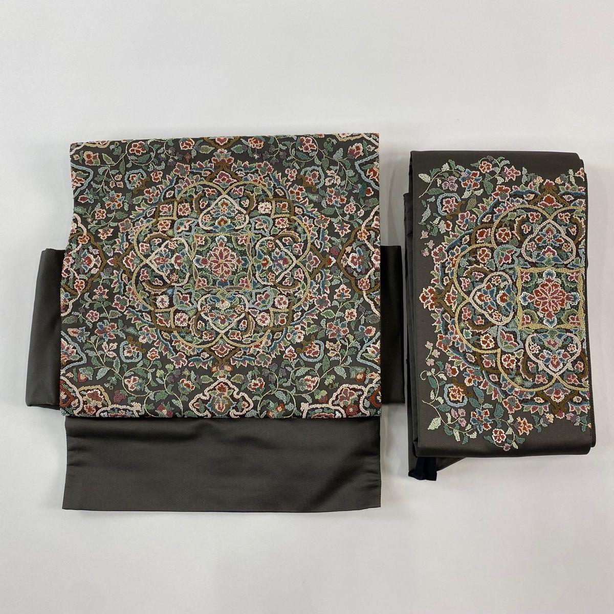 付け帯 作り帯 華文 草花 相良刺繍 金糸 墨色 正絹