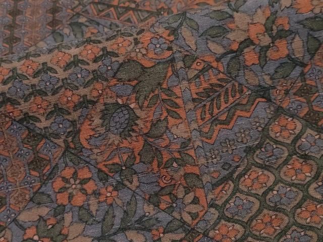 平和屋着物 上質な紬 更紗菱吉祥文 正絹 gh