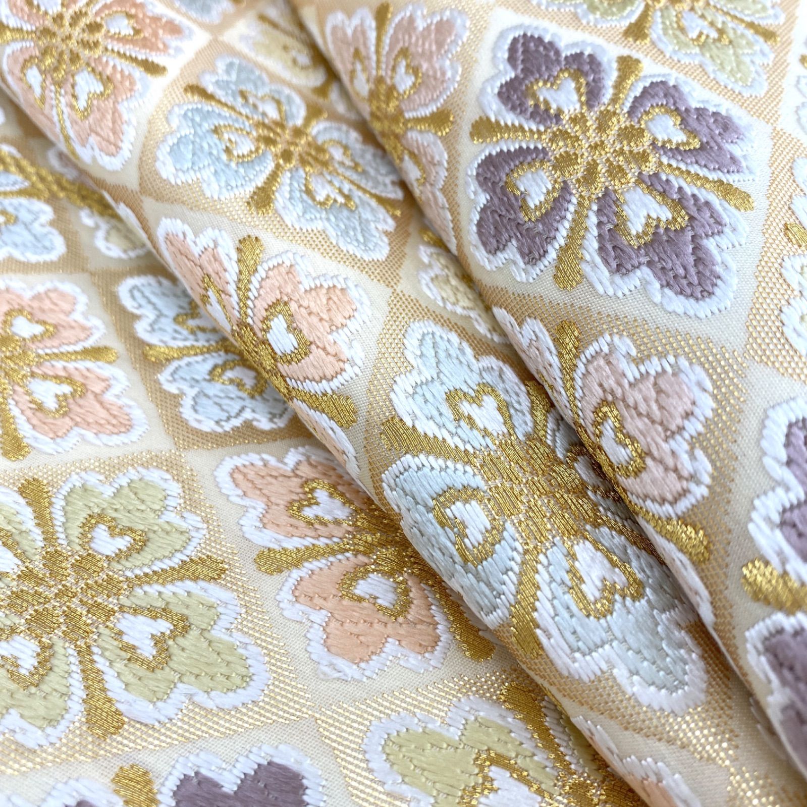 お仕立上がり ハイブランド 河合美術 正絹 西陣織 唐織 袋帯 花菱1 obx 81