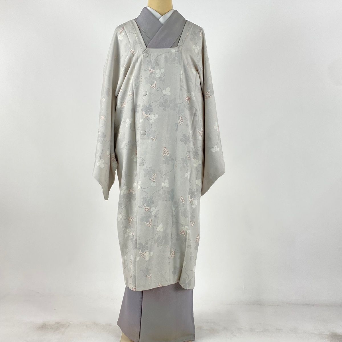 道行 身丈111 cm 裄丈68.5 L 和装コート 角衿 葡萄 地紋 灰白 正絹