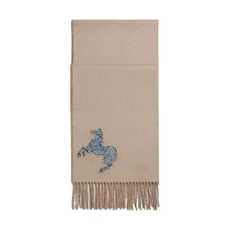 このツートンカラーのカシミアマフラーは、ロカバールパッチの刺繍が特徴です。