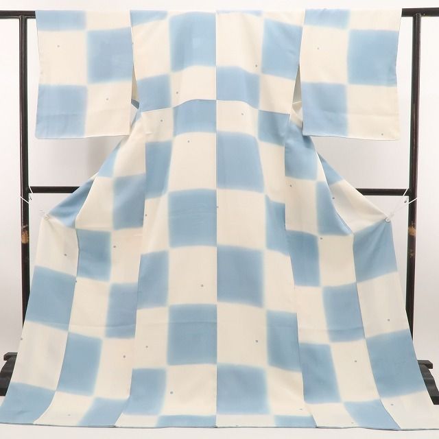 こちらのお着物は、ライトトーンの彩色で創作小紋の親しみ易さにフォーカスした馴染みの市松模様を和モダンに再デザイン化しています。あくまでも控えめな主張で、嫌みのない“さりげないセンス”がとても新鮮に映るお召し物です。