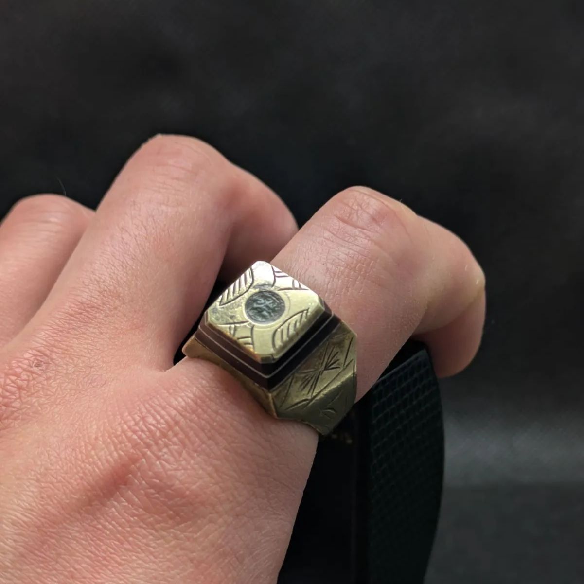シグネットリング 22号 青銅製 アンティーク品 工芸品 ブロンズ カーネリアン