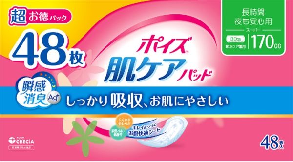 -6点セット ポイズ 肌ケアパッド 長時間 夜も安心用 日本製紙クレシア 生理用品