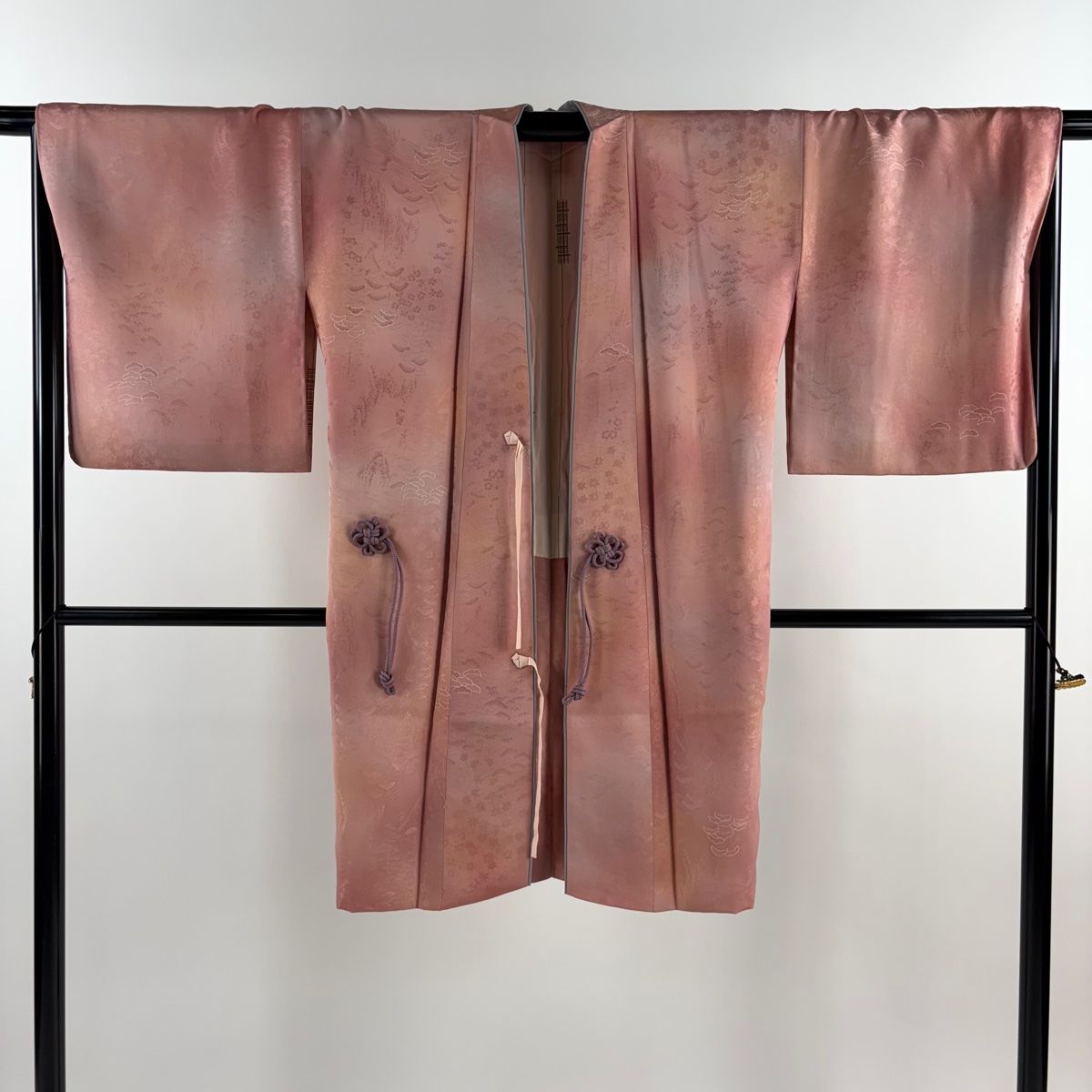 道中着 身丈102 cm 裄丈66.5 M 和装コート 松 地紋 ぼかし ピンク 正絹