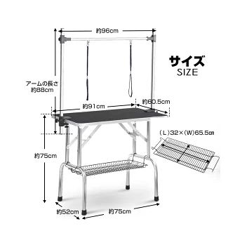 トリミングテーブル 折りたたみ トリミング台 H型アーム棒 頑丈型 多頭 トリミング 折り畳み ペット用 シャンプー カット ブラック