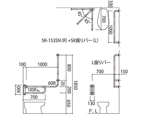 新協和 L握りバーセット洋式トイレ可動型右38 mmバフ研磨