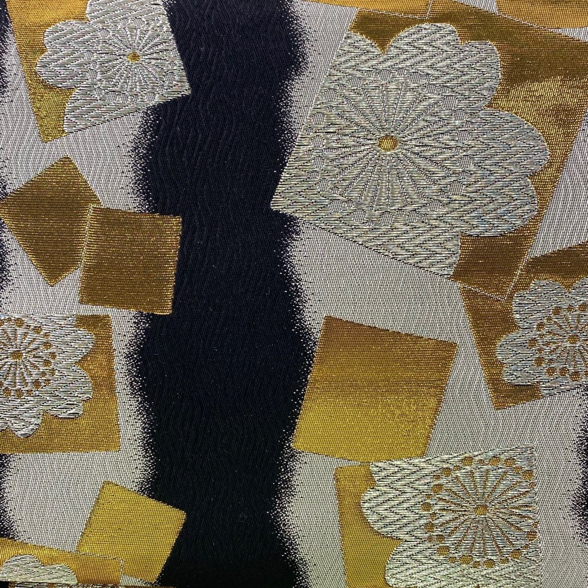 袋帯 秀品 色紙 桜 銀糸 箔 黒 六通 正絹