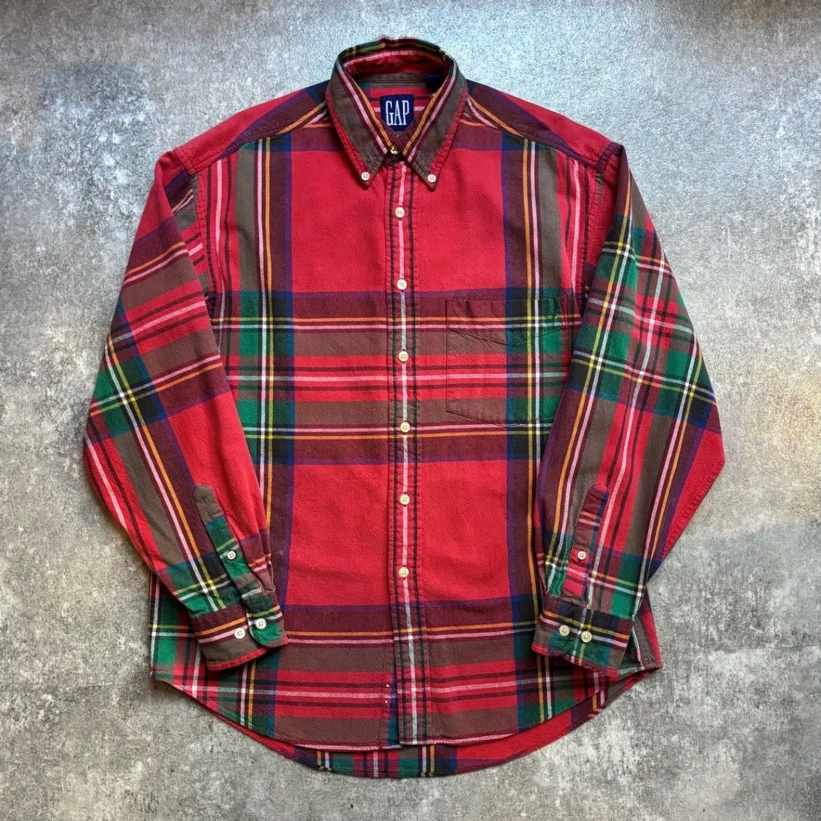 90年代 GAP ギャップ チェック コットン ボタンダウン シャツ 赤チェック