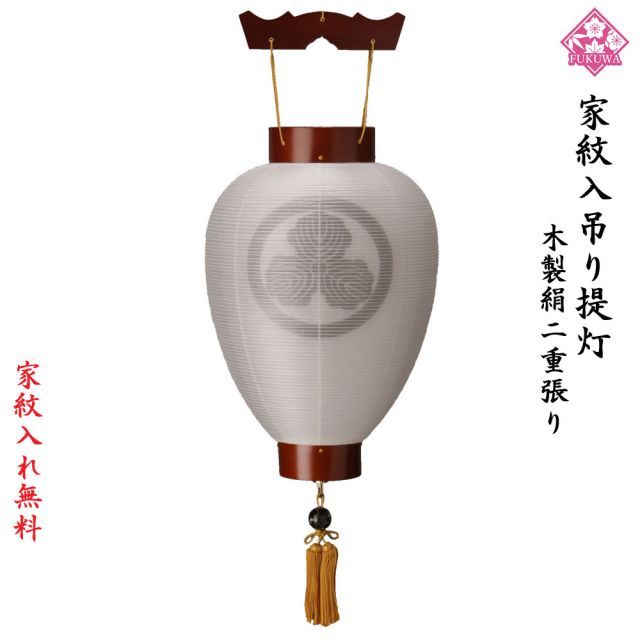 提灯 ちょうちん お迎え提灯 木製けやき 100 GF 13 絹二重張 吊り 新盆 初盆 led リモコン式 コードレス 電池灯付 お盆 盆提灯 家紋 吊り下げ 壷型