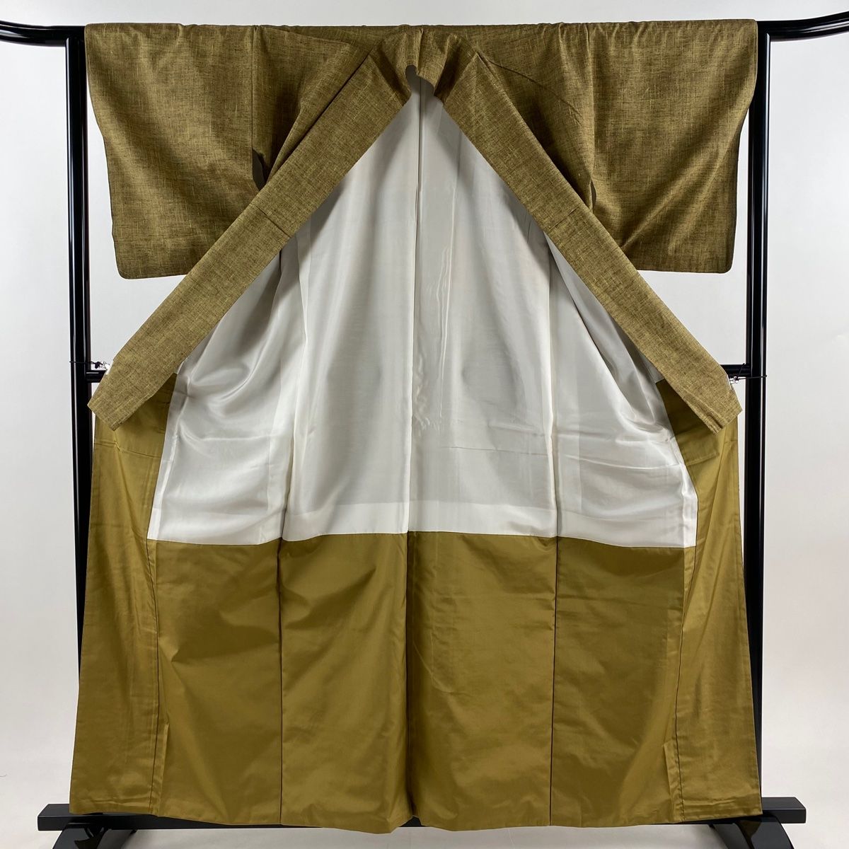 紬 身丈162 cm 裄丈64 M 袷 証紙 茶緑色 正絹 秀品
